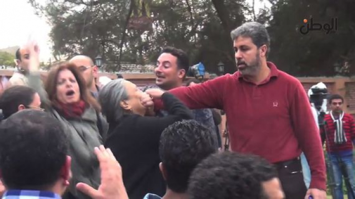 Shahenda vivió los periodos de tres presidentes y ninguno de los hombres de sus respectivos regímenes se atrevió nunca a taparle la boca, incluso cuando estuvo encarcelada. Hasta que llegó el régimen de los islamistas. Ese día, un hombre corpulento de las milicias del presidente Morsi, fue fotografiado tapándole la boca con la mano.