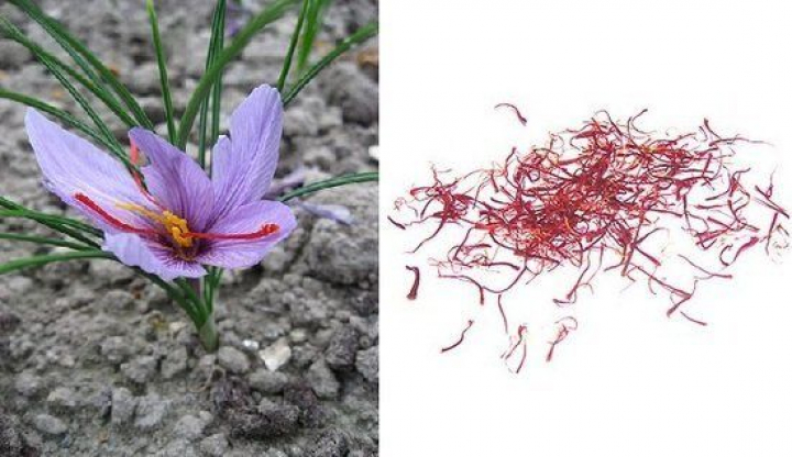Las especias se consideran la parte dura de especies vegetales como semillas o corteza, sin embargo el azafrán sale de la flor del Crocus sativus L. Se obtiene a partir de los estigmas rojos de la flor de color lila con estambres amarillos. La flor es estéril y la reproducción se realiza por bulbos. Cada flor tiene tres estigmas de azafrán, hebras, unidas en la base por el estilo. La cosecha se realiza entre los meses de octubre y noviembre. La peculiaridad que tiene la recolección es que se hace por la noche puesto que la flor no tiene que estar florecida. La separación de los estigmas se denomina "el desbrín de la rosa".