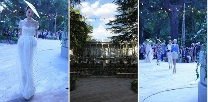 Si nos trasladamos a nuestro país tenemos que destacar el Jardín del Capricho en Madrid. Josep Font eligió este enclave para su primer desfile como director creativo de DelPozo inaugurando la 56 edición MBFWM (Mercedes Benz Fashion Week Madrid). El jardín se convirtió en pasarela gracias al trabajo de Rent-a-Garden, que habilitó el jardín con tarima e hileras de bombillas entre el arbolado. Este jardín madrileño ubicado en el Paseo de la Alameda de Osuna -tal vez desconocido para algunos- es uno de los espacios verdes que conforman el patrimonio artístico-natural de la ciudad. La precursora de este jardín romántico, fue María Josefa de la Soledad Alonso Pimentel, duquesa de Osuna.