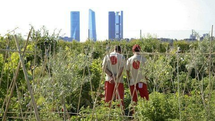 Trabajadores de la huerta. FOTO: La huerta de Montecarmelo.