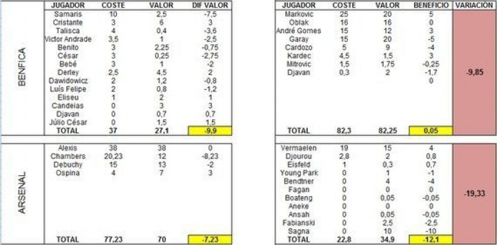 Para realizar esta comparativa no se incluyeron el coste de las cesiones ni se tuvo en cuenta el impacto deportivo en un equipo tras la compra o venta de un jugador; por lo que el análisis es específico de la capacidad de negociación de los equipos top.