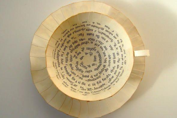 Sus tazas no sirven para tomar el té, mejor no batir huevos en sus cuencos, a sus plantas no hace falta echarles agua, sus bellotas no se pueden comer y a sus zapatos no hay que cambiarles la suela, pero en todos los objetos de Cecilia Levy, si uno se esfuerza (y tiene una buena lupa a mano) se podrían descubrir mensajes ocultos. Sus hermosos objetos están hechos con papel.