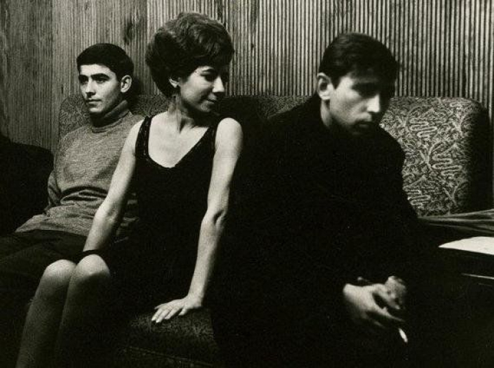 Serrat, Núria Feliu y Raimon en el Palau de la Musica. Fotografía: Oriol Maspons.