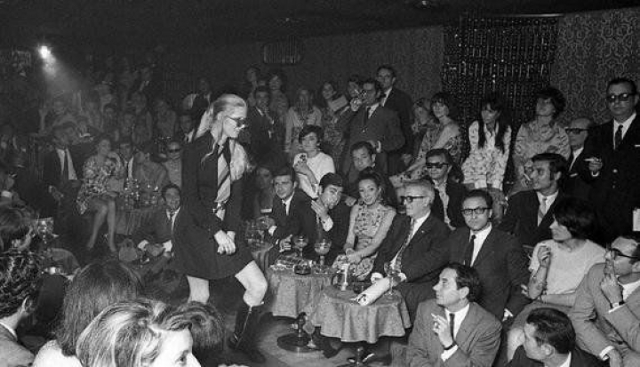 La modelo Susan Holmquist desfilando en la discoteca Bocaccio en los años sesenta. Fotografía de Gianni Ruggiero.
