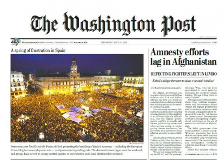 La frustración ante la fallida primavera egipcia nos ha recordado lo vacía que se ha ido quedando nuestra Puerta del Sol, hasta hace no mucho fuente de expectativas y también de esperanzas nacionales y extranjeras. El 19 de mayo de 2011 el Washington Post dedicó su portada a una imponente fotografía de Sol abarrotada de manifestantes, bajo el título "Una primavera de frustración en España". El diario norteamericano incluso comparaba los sucesos de Madrid con las protestas de la Plaza Tahrir que solo unos meses antes habían logrado derrumbar a Mubarack.