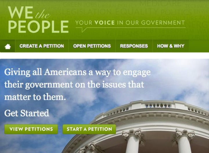 La Casa Blanca tiene una página, "We the People" ("Nosotros el Pueblo", las palabras con las que arranca la declaración de independencia de EEUU), en la que acepta peticiones populares y se compromete a responder a las que alcancen un mínimo de 25.000 apoyos. Este mecanismo es parte del compromiso del presidente Obama de escuchar a sus ciudadanos y darles la oportunidad de interactuar con su Gobierno sobre los asuntos que les importan, es decir, igualito que en España. Esta iniciativa está dirigida a los ciudadanos estadounidenses, pero es continuamente abusada con todo tipo de solicitudes peregrinas.