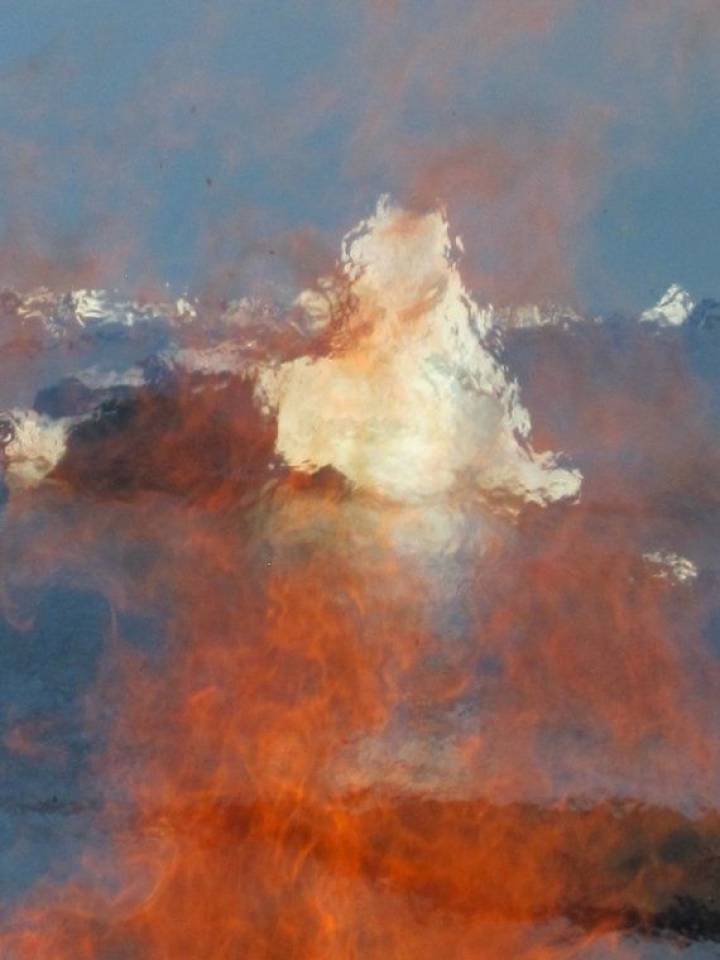 Icebergs tras el fuego de celebración de la noche (día en estas latitudes) de San Juan. Foto: CMD.