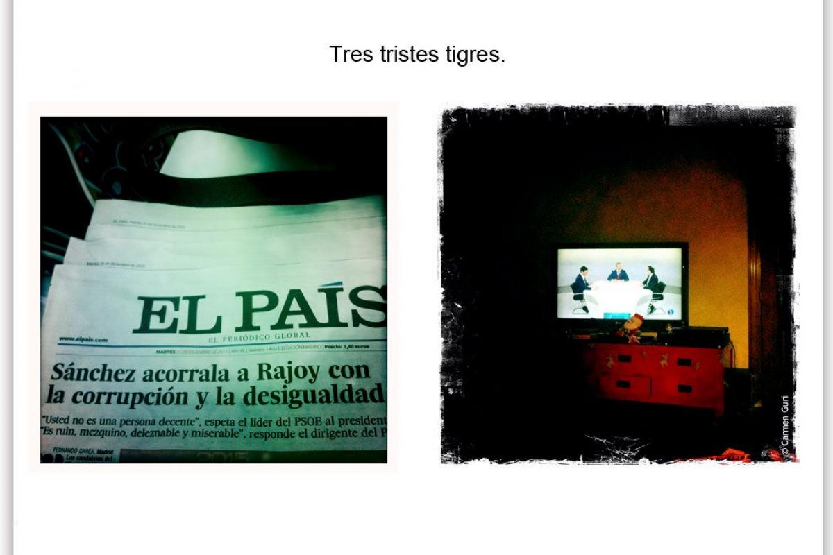 Trabalenguas electoral Carmen Guri 15/12/2015 a las 13:08 Actualizado el 15/12/2016 a las 10:12 Comment COMENTAR> Facebook Twitter Whatsapp Email 5c8b73382300003000e8399f Este post fue publicado originalmente en el blog de la autora Carmen Guri España Política debates electorales elecciones generales debates El HuffPost para Bodegas Avelino Vegas Avelino Vegas propone tres maridajes para estas navidades de la mano de los hermanos Torres Newsletter Recibe las notificaciones más importantes en tu correoapúntate a nuestro boletín Últimas noticias Un experto en cerveza señala qué es todo un crimen contra esta bebida: se ve en muchos bares Alin Comșa, psicólogo: "Elegimos parejas que se parecen a nuestros padres porque queremos afirmar lo que somos, sabemos y hemos vivido" Los creadores de la baliza V-16 desmienten el principal bulo y responden a si se han hecho ricos con ella Los restauradores de un palacio de renombre descubren que alguien garabateó su nombre en el techo y van en su busca Censura de banderas, presiones a los artistas, limitaciones a la prensa... Así ha llegado Eurovisión a la mayor crisis reputacional de su historia Comparte cómo son los pisos de la ciudad más fría del mundo y revela la pesadilla que viven para ir al baño: "No hay inodoros, recurren a cubos" Adiós al correo tradicional en 2026: el primer país del mundo quiere abolir las cartas y se espera que los demás sigan su ejemplo Una estadounidense que lleva 6 años en España define la gran diferencia con su país con una frase para enmarcarla: "Allí la gente sueña, aquí vivís los sueños" Compra acciones por valor de 1000 euros, se olvida por 30 años y cuando las revisa la cantidad de dinero le deja sin palabras Una española se va a Japón y prueba la paella en un restaurante español: "Que me lleven presa, si no está mala, ¿qué le hago?"