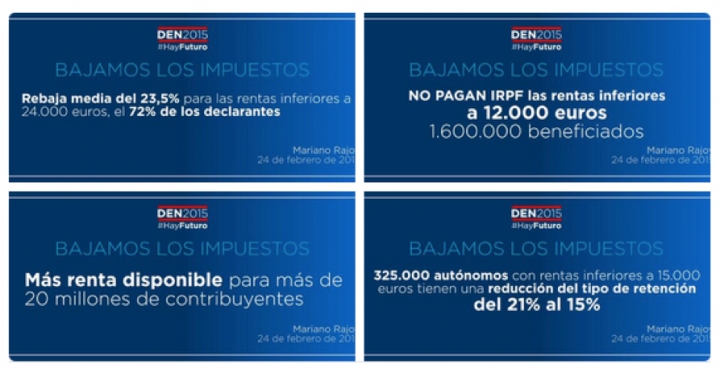 El PP dispone de una de las cuentas políticas con más seguidores en Twitter, la del presidente Mariano Rajoy, que se dedicó de manera inmisericorde a inundar el timeline de sus followers con fotofrases llenas de datos que, eso sí, iban apareciendo a medida que el presidente del Gobierno las iba dando en su intervención. Una especie de buffet libre que indigestó incluso a sus más acérrimos seguidores. Ya saben, si buscan creatividad o emoción, váyanse a Las Vegas.