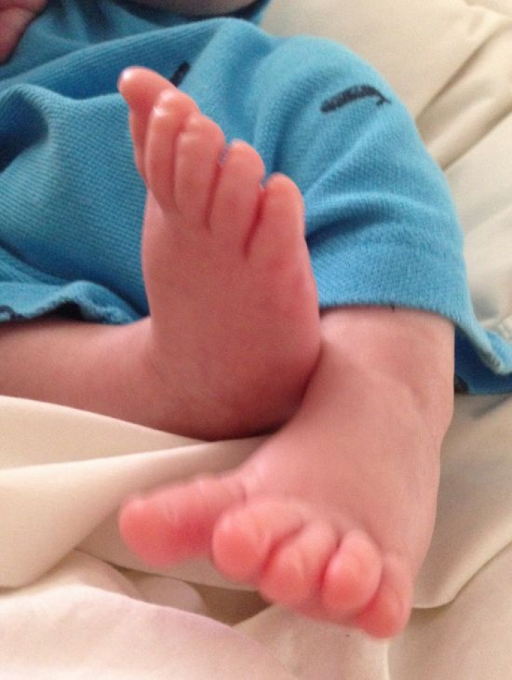 Mi hijo tiene los pies un poco arqueados. Puede que sea la cosa más adorable del mundo, aunque admito que no soy demasiado imparcial. Él se mantuvo sentado durante todo el embarazo, y con una pose de yoga al final, pues, tras la cesárea, salió con las piernas cruzadas y sus piececitos uno frente al otro.