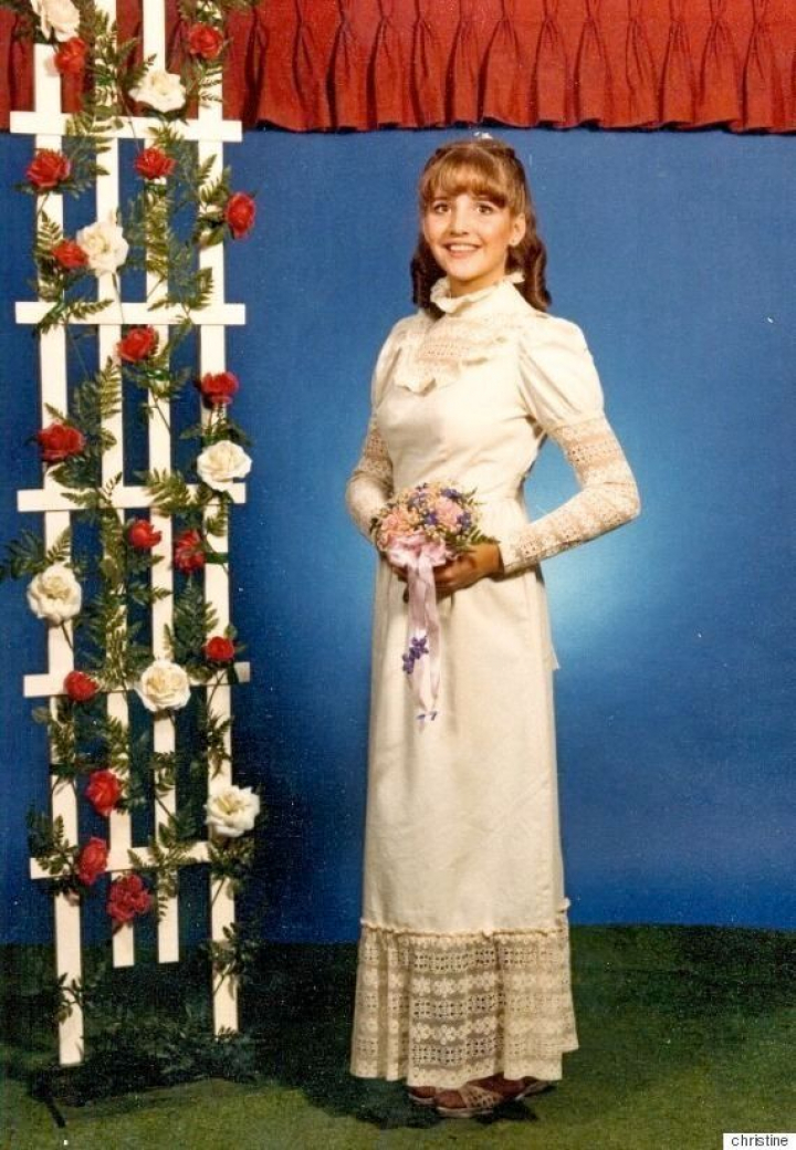 Esta fue la única graduación a la que he asistido. Era una fiesta temática de Stairway to Heaven, la canción de Led Zeppelin, pero el vestido que llevé era el disfraz que había utilizado mi hermana para la representación teatral de la obra de Thornton Miller Nuestra ciudad. Tres meses después de que se sacara esta foto, me violaron en una fiesta. Pasarían 34 años hasta que se lo contara a alguien. Las víctimas de Bill Cosby me animaron a contar mi historia públicamente.