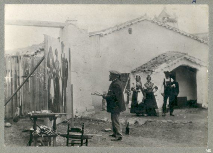 Venancio Gombau Santos Sorolla pintando en Villar de Álamos, 1912