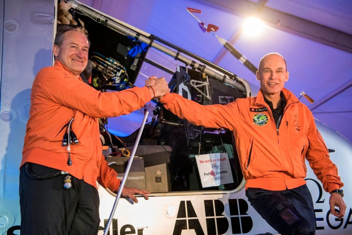 Foto de los aviadores Bertrand Piccard y André Borsberg