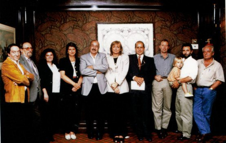 De izquierda a derecha: Jos Martín, Luis Carandell, Lola Escudero, Matilde Torres, Jesús Torbado, Cristina Morató, Pedro Páramo, Juan Gabriel Pallarés, José Antonio Pujante y Javier Reverte. (En la foto faltan Ana Puértolas, Enric Bou y Manu Leguineche). La foto fue tomada el día de la inauguración el 12 de octubre de 1997.