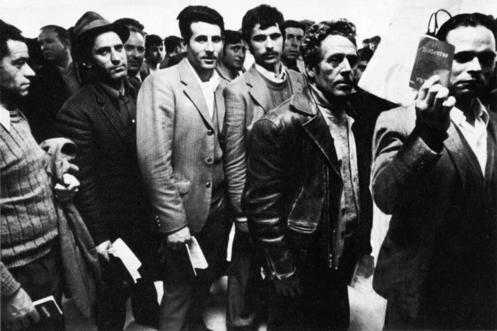Emigrantes turcos escuchan las instrucciones antes de partir a Alemania/ JEAN MOHR