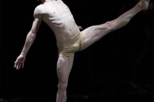 Un hombre semidesnudo respira con fuerza sobre el escenario. Es joven y está muy delgado. Suda. Se le marcan las costillas cuando coge aire.