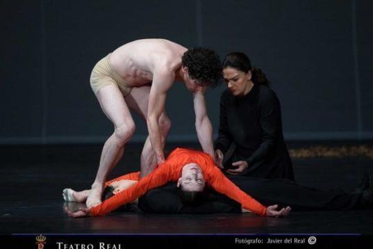 Un hombre semidesnudo respira con fuerza sobre el escenario. Es joven y está muy delgado. Suda. Se le marcan las costillas cuando coge aire. Se llama Orfeo y canta ópera sin abrir la boca. Orfeo y Eurídice, la ópera de Gluck, se despidió este lunes del Teatro Real con una función de gran belleza y sensibilidad