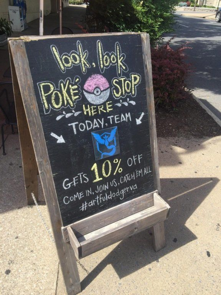 De hecho, su desarrolladora ya ha anunciado que en un futuro habrá "Poképaradas patrocinadas", para que los establecimientos puedan aprovechar las ventajas que ofrece la geolocalización dentro del juego y así poder captar más clientes. Aunque, como vemos en la siguiente imagen, muchos ya están aprendiendo a sacarle partido.