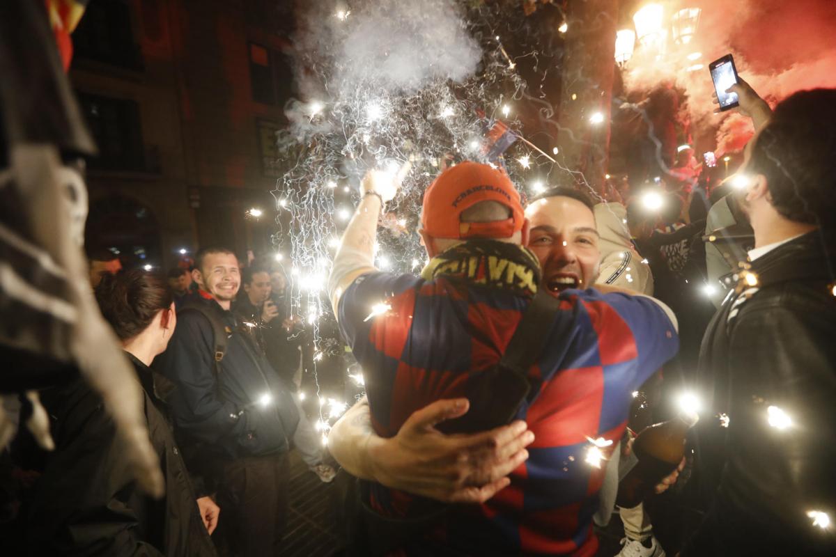 Unos 2.000 aficionados del Barça celebran LaLiga en Canaletas