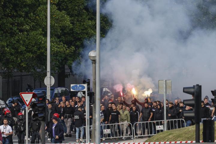 Los incidentes ocurrieron cerca de la media hora de encuentro, coincidiendo también con el 1-1 de los belgas, y se alargaron durante varios minutos. Los seguidores radicales del Anderlecht, unos 300 situados en torno a un perímetro de seguridad, destrozaron una de las pantallas de metacrilato para lanzar objetos, en su mayoría, butacas que arrancaron de su sitio.