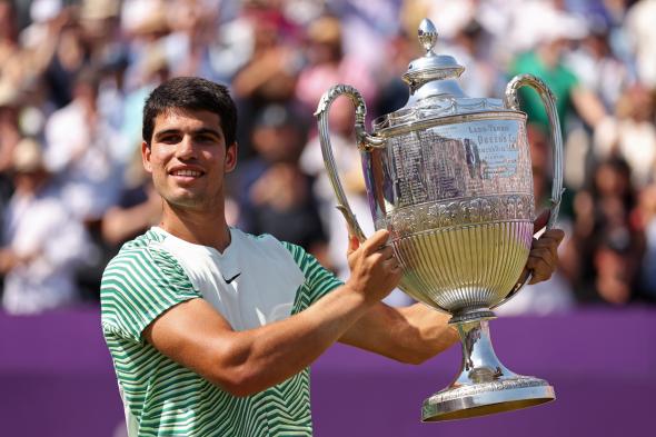 Alcaraz consigue su primer título en hierba tras vencer a De Miñaur en Queens por un doble 6-4