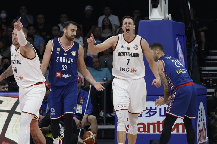 Alemania no quiso quedarse atrás en ningún momento. Los germanos resistieron a la circulación rápida y a la calidad serbia con solvencia. Fue un primer tiempo impecable. Igualdad máxima (47-47) al descanso, con Serbia muy acertada desde el exterior, obligada, y Bogdanovic implacable; y con Alemania sostenida en Schroeder y Franz Wagner.