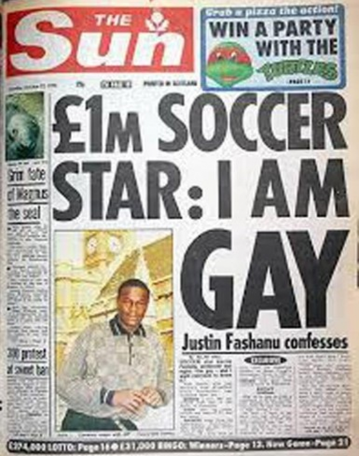 En 1990, Fashanu no pudo más e hizo pública su orientación sexual. "Estrella futbolística de 1 millón de libras: SOY GAY", tituló en su portada el diario sensacionalista The Sun. En la entrevista, Justin también mencionaba a un miembro del parlamento británico, al que decía haber conocido en un bar gay y con el que había terminado una noche "en la cama de su piso de Londres".