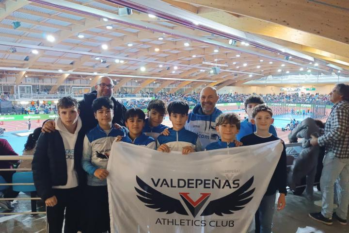 Atletas, entrenadores y directivos del Valdepeñas Athletic Club se desplazaron este viernes a Madrid para presenciar el meeting de Madrid y ver competir a su expupila.