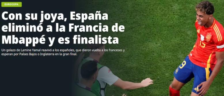 Cruzando el charco, también encontramos referencias al triunfo de la selección sobre los franceses. El diario Olé, el periódico de referencia deportiva en Argentina, también se deshace en elogios ante los logros de la estrella que acaba de nacer: Lamine Yamal.