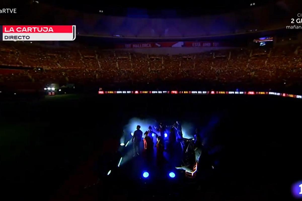 Precisamente, la actuación musical estrella que ha tenido lugar minutos antes del partido en el centro del campo del estadio de La Cartuja, ha sido especialmente criticada en redes sociales por la, para muchos, pobre puesta en escena organizada por los responsables.