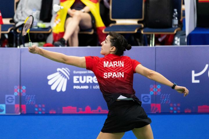 Marín, quinta de la clasificación mundial, ha abierto la final con una victoria sobre Line Hojmark Kjaersfeldt (21) por 21-19 y 21-12. La seis veces campeona continental individual ha pasado apuros en el juego inicial, en el que ha llegado a ir tres puntos por detrás, pero tras el empate 19-19 los dos últimos tantos fueron suyos.