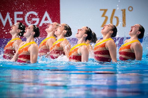 El equipo español de natación artística muerde la plata en rutina técnica en Doha