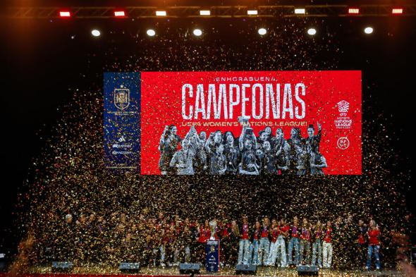 Además, la capitana Paredes también cogió el micrófono para agradecer el apoyo de la afición. "Es importante sentir vuestro apoyo, vamos a por más. Os necesitamos", afirmó, satisfecha del trabajo de un equipo que, además de ganar la primera edición de la Liga de Naciones, logró el primer billete olímpico en la historia del fútbol femenino español.