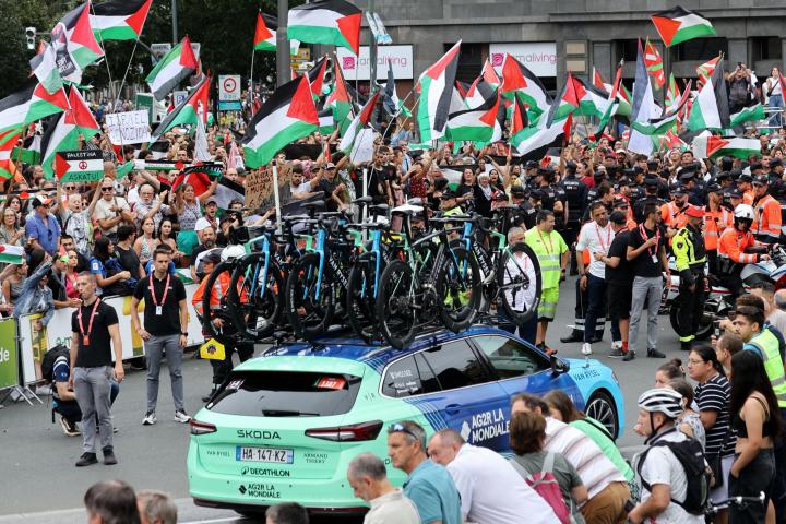El debate está sobre la mesa: ¿es cosa de los gestores de la competición o de Unión Ciclista Internacional? ¿Va a irse el equipo ante las protestas propalestinas? ¿Y si compite sin bandera?