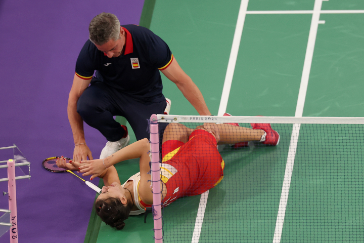 Y por desgracia, en esta lista no podía faltar uno de los momentos -si no, el momento más cruel, desgarrador y doloroso- de los Juegos Olímpicos de París: la terrible lesión de Carolina Marin en las semifinales en el cuadro individual femenino de bádminton ante la china Bing Jiao He, cuando la onubense lideraba claramente en el marcador tras ganar el primer set 21-14 y mandar en el segundo por 10-6.