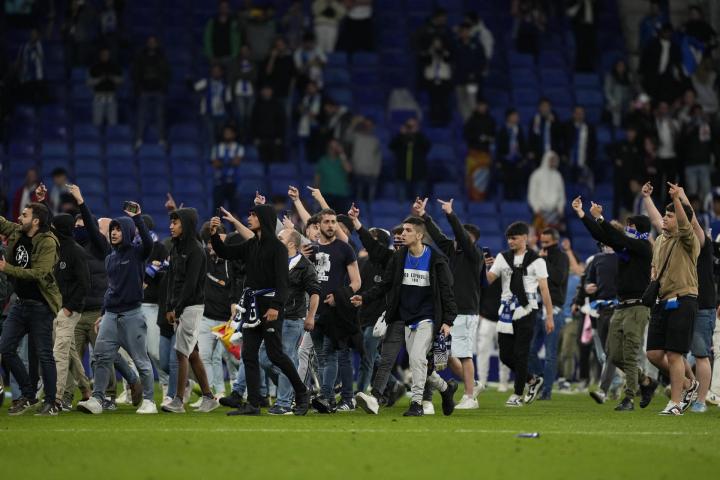 Hasta que ultras blanquiazules empezaron a saltar al campo y se inició una lluvia de objetos que obligó a intervenir a los Mossos d'Esquadra y a la seguridad privada del estadio para garantizar que los jugadores del Barça pudieran ganar el túnel de vestuarios.