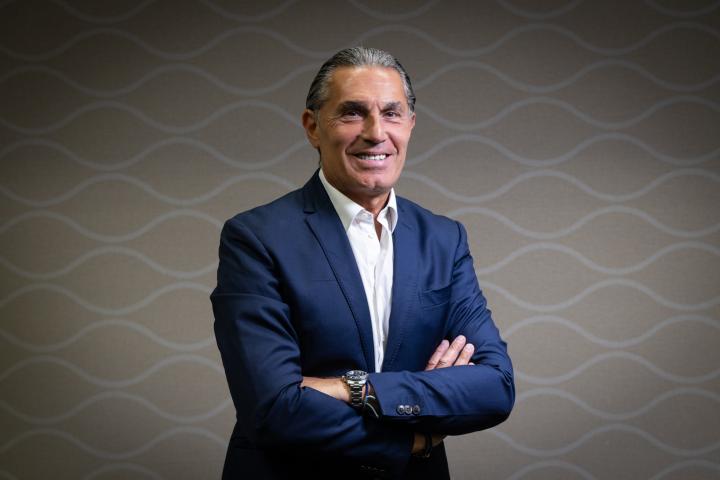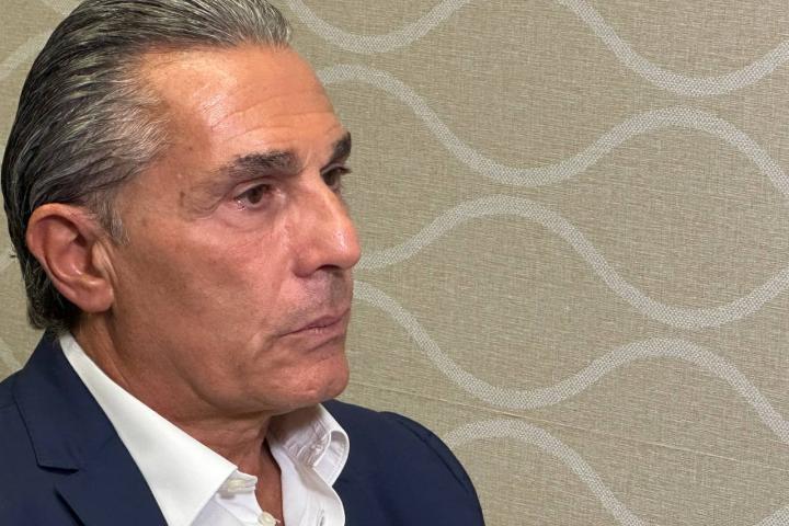 El seleccionador italiano acude a su entrevista con El HuffPost con la misma presencia escénica que luciría si tuviera que afrontar un partido: con el traje impoluto y con su ya tradicional peinado engominado reluciente.