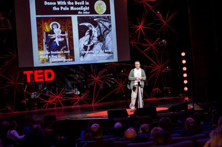 La mejor manera de hacerlo, dice, es brindar apoyo y aliento a las víctimas del terrorismo. Y en ese momento confiesa algo que provoca en la audiencia una risa nerviosa. "Yo les quería hacer volar por los aires a todos ustedes", dice. "Pero TED, por razones de salud y seguridad, dice que tengo que hacer una cuenta regresiva". A pesar de que la decisión de evitar un ataque al corazón masivo entre la audiencia parecía buena, el estruendo que causó la bomba falsa que siguió a su 3-2-1 fue tan alto que hizo saltar la gente de mi alrededor.
