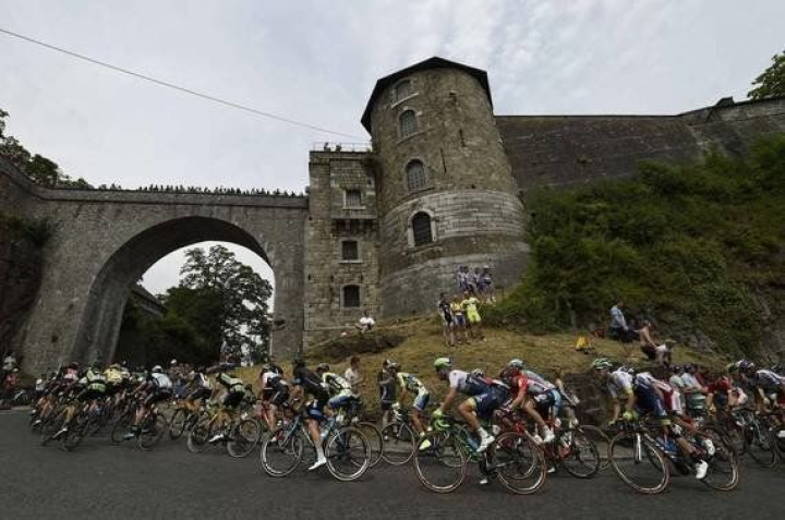 El pelotón al paso por ciudadela de Namur, durante la cuarta etapa. ERIC FEFERBERG/AFP/Getty Images