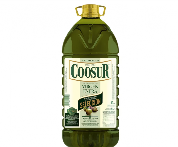 En esta ocasión, es una garrafa de cinco litros de la marca Coosur, y cuyo precio es de 39,90€ tras una rebaja de más de un 30%, ya que su precio sin descuento sería de 57,75€ teniendo en cuenta el mercado.