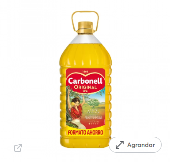 En la web de Chollómetro informan de que la marca española está ofertando la garrafa de 5 litros de aceite 0'4º de Carbonell por 41,49€, lo que supone una rebaja de casi el 30%, ya que esta misma garrafa se encontraba hace unos días en 57,96€, un 28% más cara.