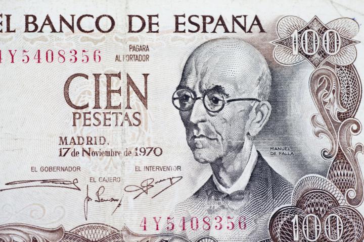 Ya de menor precio, pero más que el que tienen 100 pesetas, están, por ejemplo, el billete de 100 de 1906 o uno con la imagen de Manuel de Falla. Ambos podrían valer entre 500 y 2.000 euros. En este caso, además, si tienes billetes con fallos de imprenta podrías tener incluso más valor encima.