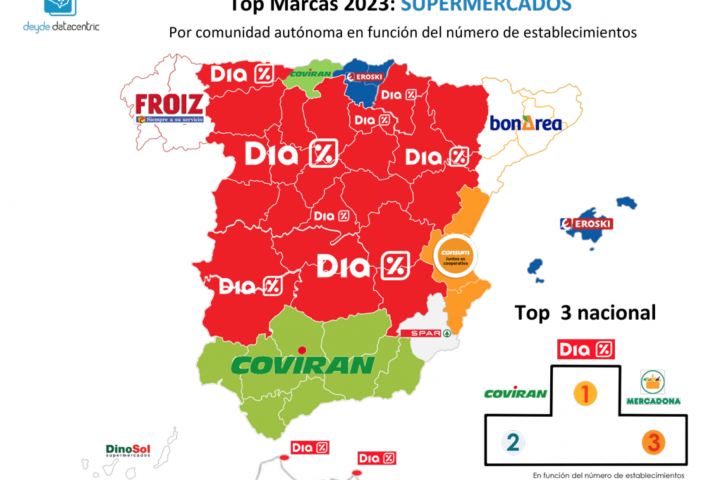 Mercadona se ha instalado como referencia común en España al hablar de supermercados, tal es su calado en la población. Se examinan sus productos propios, sus novedades, sus calidades... Sin embargo, aunque por su popularidad lo pueda parecer, la valenciana no es la cadena de supermercados más grande de España, con más presencia en el territorio, según un estudio reciente elaborado por Deyde DataCentric.