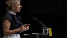 La vicepresidenta segunda y ministra de Trabajo avisa de que "tenemos un país con un nivel de concentración bancaria del 70% y casi en régimen de oligopolio".
