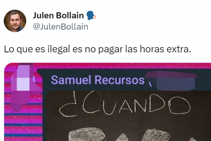 Bollain, además de compartir este pantallazo con la conversación, aseguró que "lo que es ilegal es no pagar las horas extras". Su publicación se hizo viral y ya ha sido visto más de 800.000 veces. Además, ha recibido más de 5.800 me gusta y 1.500 compartidos, entre ellos el de Díaz.