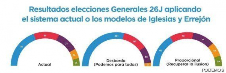 Con un sistema electoral proporcional, que es la propuesta que defiende Errejón, al Partido Popular, con el 33% de los votos le corresponderían 116 escaños. Pero nuestros sistema electoral esta clasificado como un sistema de mayorías corregidas y "regala" 21 diputados adicionales a la primera lista (137). Por eso Podemos se ha comprometido a cambiar el sistema electoral para garantizar una mayor proporcionalidad.