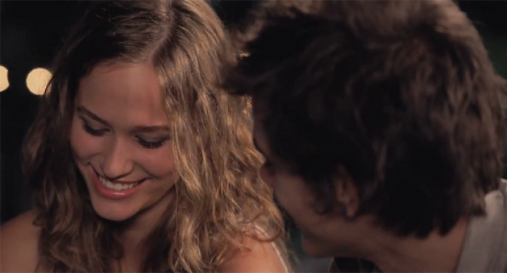 Pero dentro de la extensa linografía de Boyhood hay una escena que logra tocar las fibras más sensibles de mi nostalgia. Es la escena en que el personaje principal, Mason, se enamora de Sheena (interpretada por Zoe Graham). La escena se desarrolla en una fiesta, cuando los dos adolescentes se separan del resto para refugiarse en la cálida luz de una fogata: un escenario adecuadamente cliché para un enamoramiento adolescente. La escena fluye con el mismo extrañamiento emocional que caracteriza al personaje principal. Mason parece demasiado absorto en sí mismo y su nostalgia como para intervenir en su destino, como si éste le fuera ajeno. Sheena, por el contrario, es cautivante y coqueta, su mirada tiritante hipnotiza la cámara, pero aunque sus ojos son oníricos, sus sentimientos son transparentes.