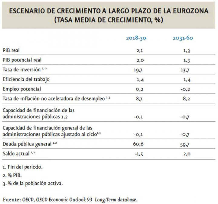 Este título es el enunciado con el que el informe de la OCDE sobre la eurozona encabeza el apartado dedicado al análisis de las perspectivas de la región. No solo se refiere al momento actual o al futuro próximo, sino que constata el comportamiento decepcionante que el conjunto de la región ha mantenido prácticamente desde el nacimiento de la moneda única.