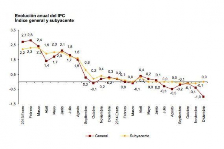 La española, una de las economías tradicionalmente más inflacionistas de la Unión Europea, acompañó la recesión de 2009 con varios meses seguidos de variación negativa del IPC, y ahora en este año son ya siete. En el pasado mes de diciembre los precios volvieron a caer, un -0,6% y en términos interanuales un 1%. La tasa media en 2015 fue del -0,2%.