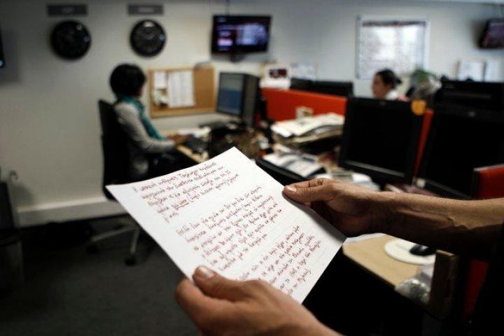 Imagen: un periodista de la agencia Reuters lee en Atenas una copia de la nota de suicidio/REUTERS